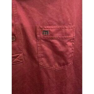 Travis Mathew Men Golf Polo Shirt Stretch Dark Red Burgundy Size LLike new with extra buttons