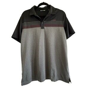 Travis Mathew Men Polo Shirt Gray Cainsville Redline Striped Golf READ size L