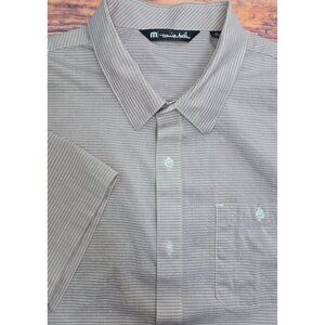 Elevate your wardrobe with this Travis Mathew button-up shirt. Crafted from a comfortable cotton blend, its sleek striped design and durable fabric combine style and functionality.
