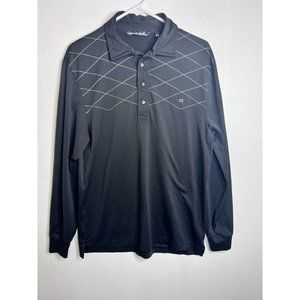 Travis Mathew Mens Golf Black Long Sleeve Polo Logo Size Medium Diamond Design