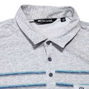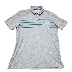 Travis Mathew Mens Gray Polo Shirt XXL Blue Stripes
