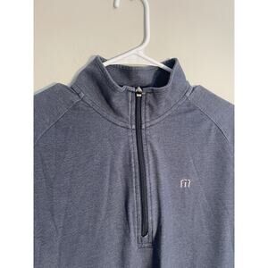 Travis Mathew Men's M Golf 1/4 Zip Sweater Pullover Pocket Blue Long Sleeve. Excellent used condition. No rips tears holes or stains. See photos for overall condition and measurements. Custom embroidery on sleeve.