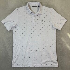 Travis Mathew Mens Medium White Golf Polo Shirt Geometric Short Sleeve Casual