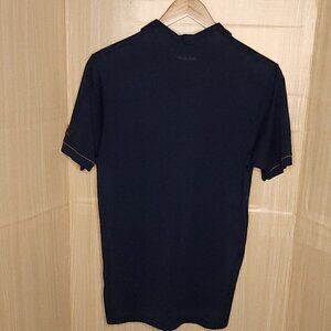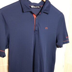 Travis Mathew men’s navy blue brick red golf polo medium. (has logo on sleeve). Good condition. Measurements are: 29 ½" from shoulder to hem, and 19 ½" from armpit to armpit.