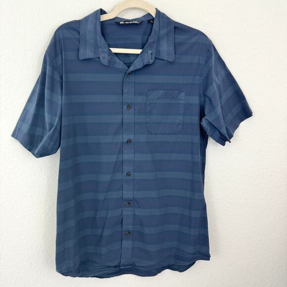 Travis Mathew Mens Short Sleeve Button Shirt Size L Stripe Lightweight Gray