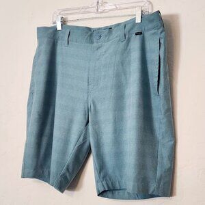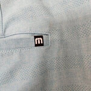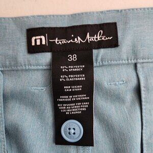 Travis Mathew Men's Shorts in size 38 are versatile and perfect for various occasions such as travel, casual wear, and workwear. Made from a blend of polyester and spandex, these blue shorts feature a flat front, a mid-rise fit, and a regular fit for comfort. The 10-inch inseam and slash pockets add practicality, while the lightweight and stretchy material make them suitable for outdoor activities in any season. The preppy and sporty theme of these chino-style shorts adds a stylish touch to your wardrobe.