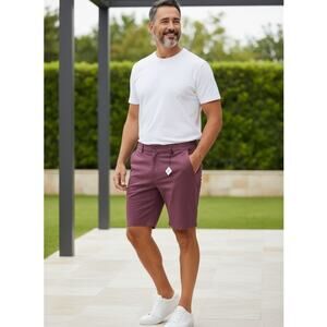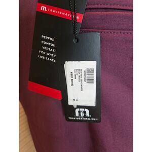 New with Tags Travis Men's Size 40 8"inseam HEATER series; style is "Drive in Movie" Maroon color. 90% Polyester, 10" Elastane. Zip fly button closure. Belt Loops. Side entry pockets. Back pockets. MSRP $89.95