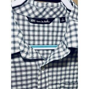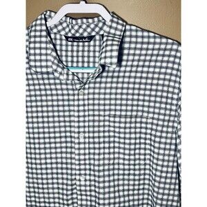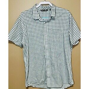 Travis Mathew Mens Size XL White Grey Black Plaid Button Down Short Sleeve Shirt