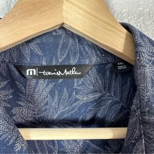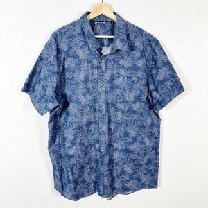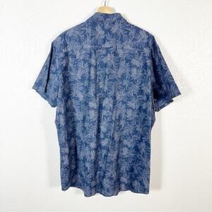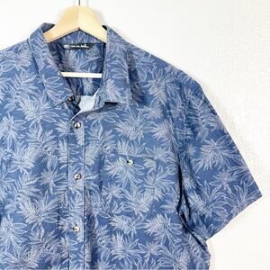 Travis Mathew Mens Sweet Serenade Short Sleeve Button Up Shirt in Blue and Grey Palm Print Size XXL