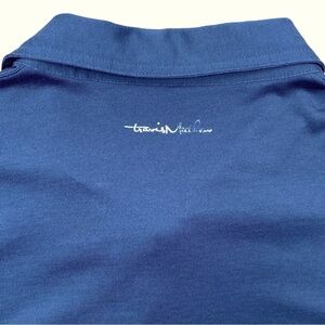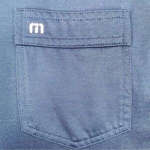 Dark navy Travis Mathew polo in XXL. Union Pacific embroidered logo on the left sleeve. Front left chest pocket. Travis Mathew logo on the back of the neck and slightly faded on the right side. Otherwise, great condition.