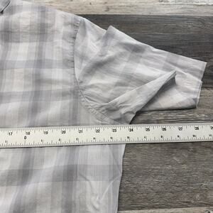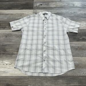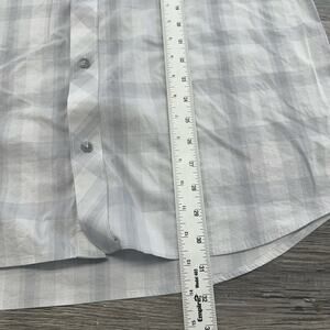 Travis Mathew Nylon Shirt Gray White Mens XL Plaid Short Sleeve Button Stretch