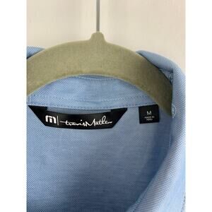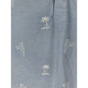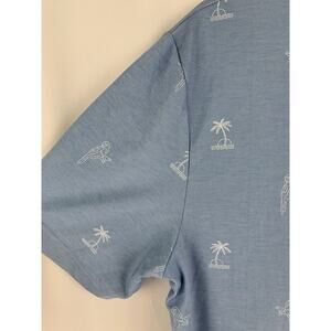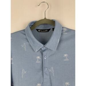 Travis Mathew Parrot & Palm Trees Polo Shirt Mens Medium Blue Golf Short Sleeve