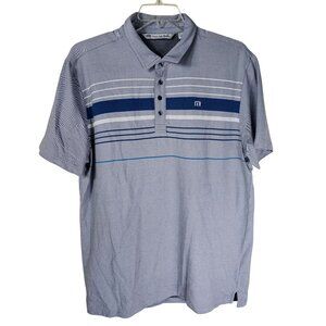 Travis Mathew Performance Polo Shirt XXL Gray & Blue Stripes Short Sleeve Golf