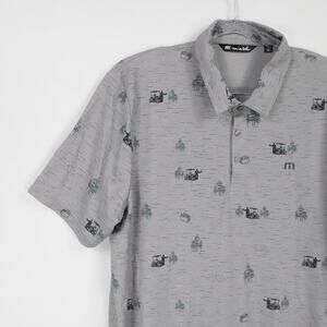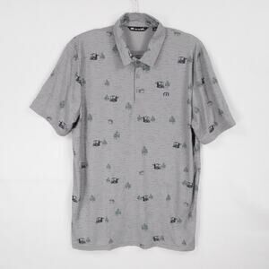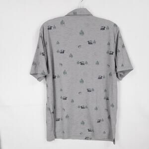 Travis Mathew Polo Shirt Mens 2XL Gray Golf Cart Tree Print Performance Casual