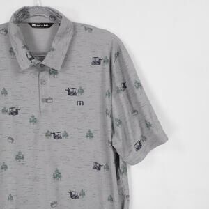 TravisMathew Polo Shirt Mens 2XL Gray Golf Cart Tree Print Performance Casual