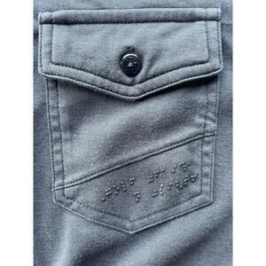 Very good condition. Has 2 pockets on front. One pocket has Braille on it (see photo).