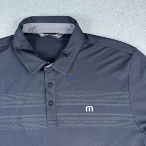 Travis Mathew Polo Shirt Mens Large Black Golf Performance Stripe Idealease Logo