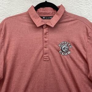 Travis Mathew Polo Shirt Mens Large Red Performance Golf Dimpled Ballz Club
