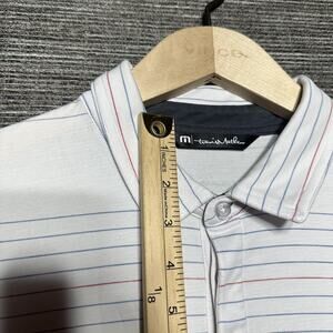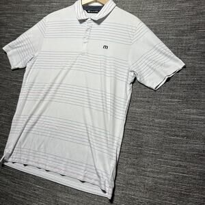 Travis Mathew Polo Shirt Men's M White Striped Short Sleeve Golf