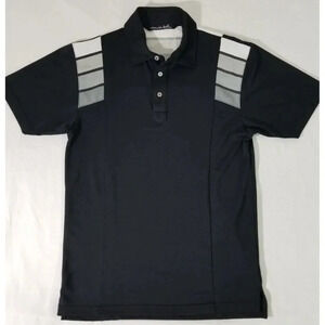 Travis Mathew Polo Shirt Mens S Short Black Short Sleeve Gray Block Shoulders