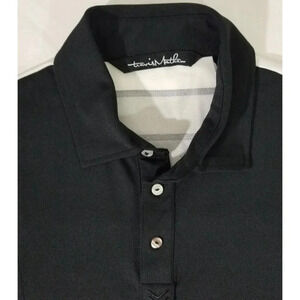 Travis Mathew Polo Shirt Mens Short Black Short Sleeve Gray Block Shoulders