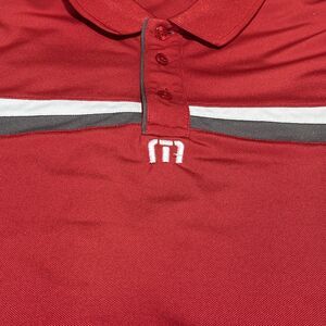 Travis Mathew Polo Shirt Men's Small Red White Stripe Golf Performance Stretch