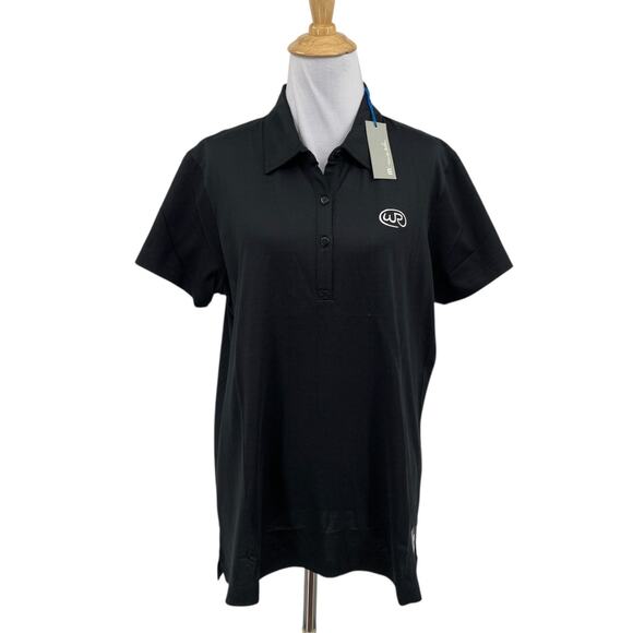 TRAVIS MATHEW POLO SHIRT WOMENS XL BLACK SHORT SLEEVE WICKENBURG GOLF *LOGO