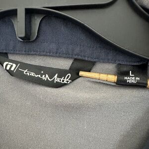 Travis Mathew Polo Shirt Mens Large Blue Grey Golf Striped Short Sleeve Adult