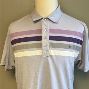 Travis Mathew Purple Logo and Stripe Polo Shirt (sz XL)