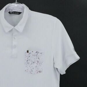 Travis Mathew Shirt Men Large White Polo Splatter Pocket Golf Performance Preppy