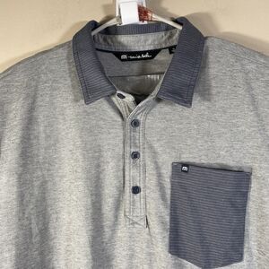Travis Mathew Shirt Men XL Two-Tone Gray Pocket Golf Polo Short Sleeve Top