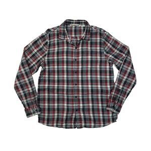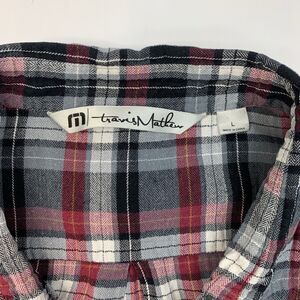 TRAVIS MATHEW SHIRT MENS L LARGE BLACK RED PLAID COTTON LONG SLEEVE FLANNEL
