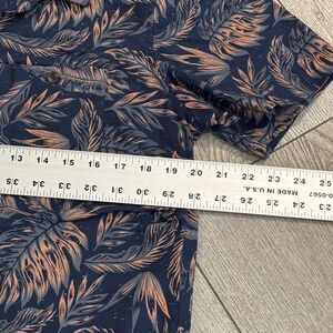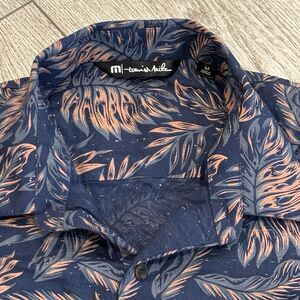 Travis Mathew Shirt Mens Medium Blue Hawaiian Floral Aloha Tropical Pattern Golf