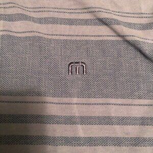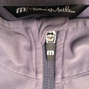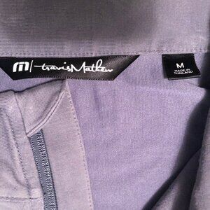 This Travis Mathew shirt is a must-have for any golf enthusiast. Made of a comfortable cotton blend fabric, it features one zippered side pocket, an athletic fit with stretch for a full range of motion. The shirt has a solid gray color with a collared neckline and button closure. The long-sleeved shirt also has a logo accent for added style. Designed for casual occasions, this polo shirt is perfect both on and off the golf course. It is machine washable for easy care and maintenance. This shirt is a great addition to any men's wardrobe, and it is available in size medium. THis polo has no condition issues