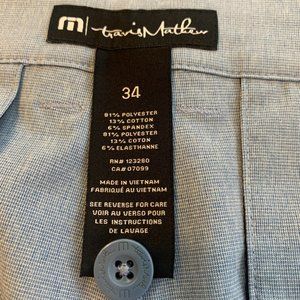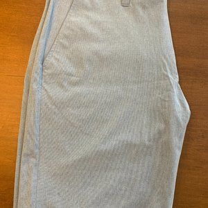 Nice stretch to the material for light athletic activity - i.e. golf, walking, etc. Purchased at Nordstrom; worn twice for a light walk, in like new condition. Extra button still attached to the inside tag. Two front pockets, two back pockets.