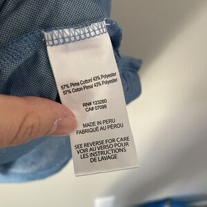 Has an embroidery of a company on one of the shirt sleeves, please see photo. Its not too noticeable when wearing.