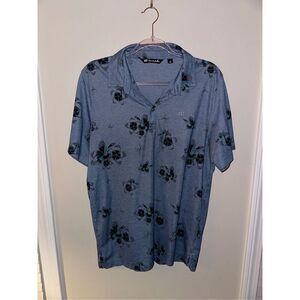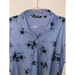 Travis Mathew Speed Runner Heather Opal Blue Floral Polo Size Large