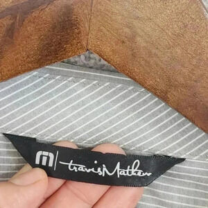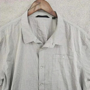 Travis Mathew Striped Button-Up Short Sleeve Shirt XXL Cotton Blend Gray