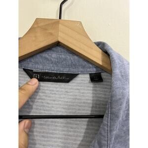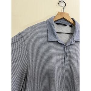 Travis Mathew Mens Short Sleeve Striped Golf Polo Shirt 2XL Performance Preppy Minimalist Normcore Casual Dad Blue.
