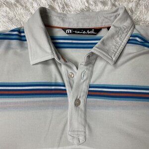 Travis Mathew Striped Short Sleeve Polo Shirt in Size XL. Thinner and lightweight blended fabric. Los Altos Country Club on left sleeve. Pre owned with no visible flaws.