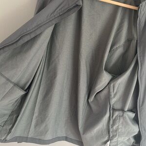 Sleek charcoal windbreaker with full-zip design. Ideal for versatile wear.