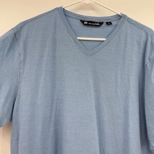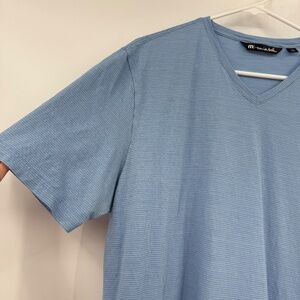 Style: Travis Mathew T Shirt Men XXL Blue Striped V Neck Short Sleeve Pima Cotton Blend