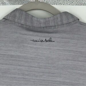 Travis Mathew What A Legend Polo Shirt Mens Medium Heather Gray Scoop Hem NWT
