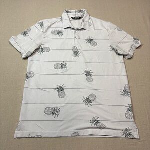 Travis Mathew White Pineapple Design Short Sleeve Polo Men’s Large White Black See pictures for reference and measurements