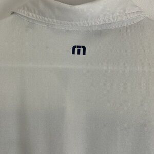 Travis Mathew White Polo Golf Shirt with Blue Front Stripe