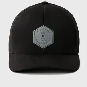 black hat from Travis Mathew. has "Chaska town course" embroidered on left side of hat. no buckle, flex fit! size s-m.