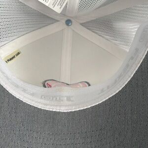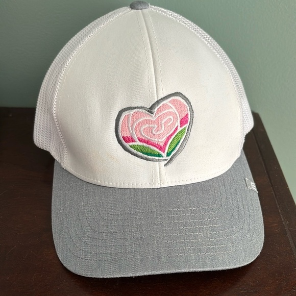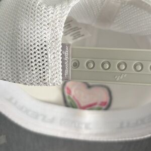 Stylish white and gray cap featuring a heart logo. Perfect for casual wear.