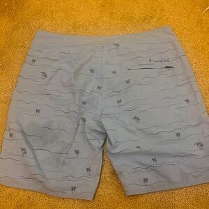 Size ripped out. Worn by a size medium see measurements to see sizes. Velcro and drawstring. Some loose string at top of shorts.