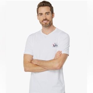 Travis Mathew white crewneck t shirt graphic holiday Santa too drunk to drive