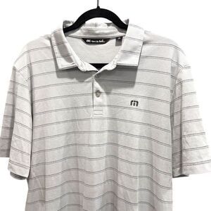 Elevate your casual wardrobe with the TravisMathew Gray Striped Polo, designed for comfort and style. Crafted from soft, breathable fabric, this polo ensures you stay cool and comfortable during warm summer days. The classic collared neckline and button-down closure provide a polished look, while the embroidered logo adds a touch of sophistication. Perfect for casual outings, weekend get-togethers, or a relaxed day at the office, this polo is versatile and stylish. Machine washable for easy care. Pre-owned but in excellent condition.